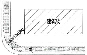21.消防车能够利用的不规则的场地(可为丁字形,Y字型等满足消防车回车要求的场地(从交叉点起算车道长度不应小于12m,附图21)可以作为消防回车场地。