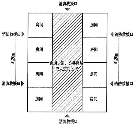 24.建筑物与消防车登高操作场地相对应的范围内,应设置直通室外的楼梯或直通楼梯间的入口,入口可为通往楼梯间的门厅、走道。