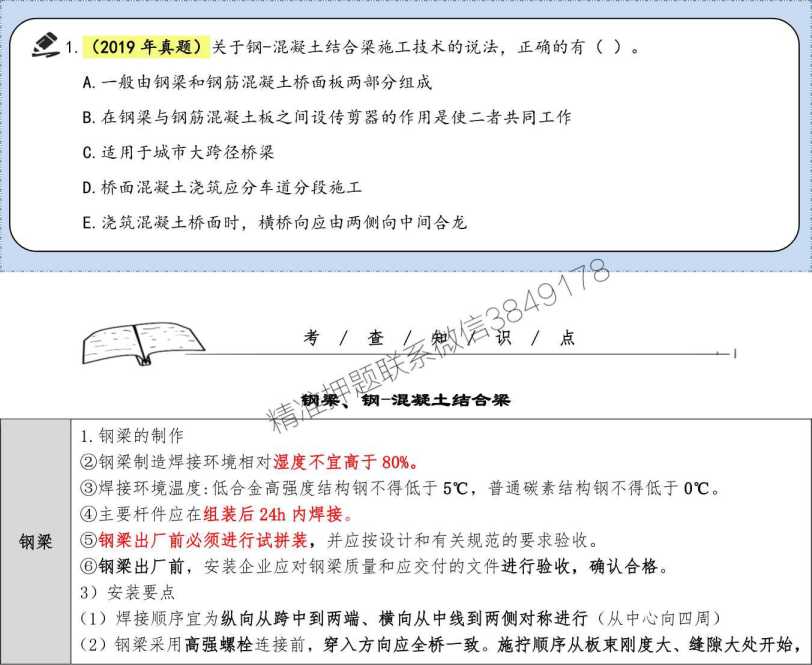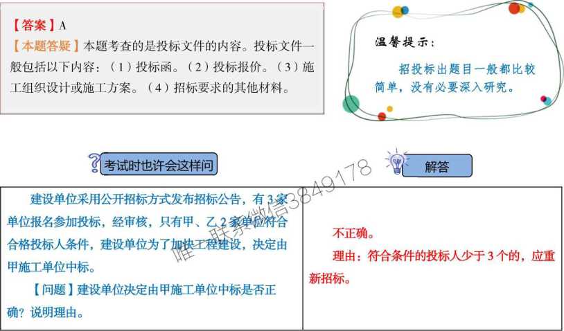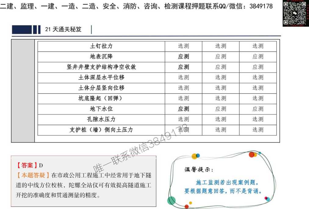 二建、监理、一建、一造、二造、安全、消防、咨询、检测课程押题联系QQ/微信:3849178