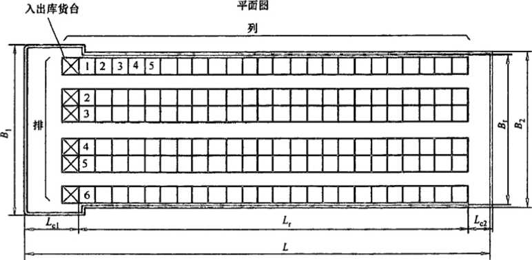 库架分离式货架的尺寸由表2和图3表示。