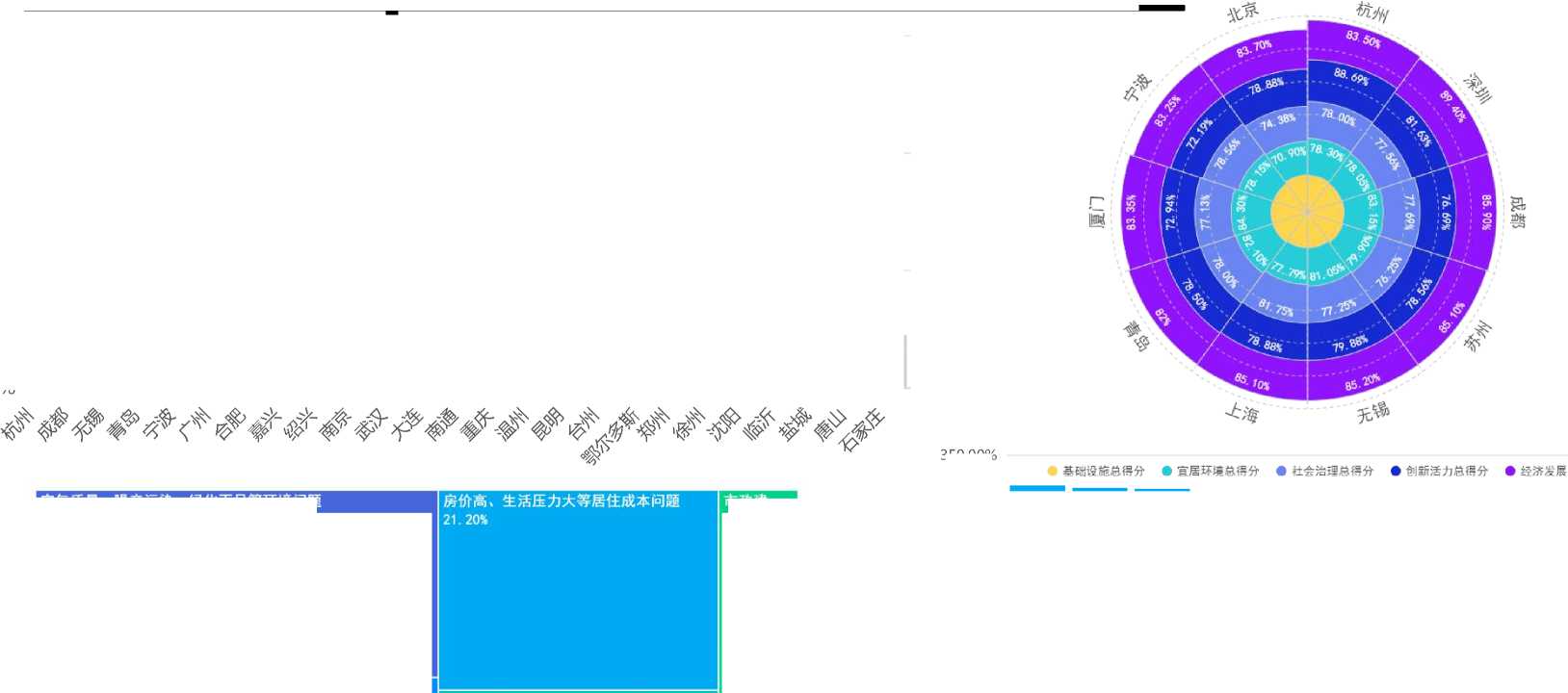 ■空气质量、噪音污染、绿化不足等环境问题 ■交通拥堵、公共交通不便、停车难等交通问题 •房价高"生活压力大等居住成本问题