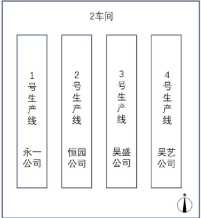 3.生产线出租情况。2号车间内4条纺丝生产线由西至东编 号为1号至4号,如图3所示。分别出租给永一公司、恒园公司、 昊盛公司和吴艺公司。4家单位承租后,未对生产线进行改造, 未互相签订安全生产管理协议,未明确各自的安全生产管理职责 和应当采取的安全措施。