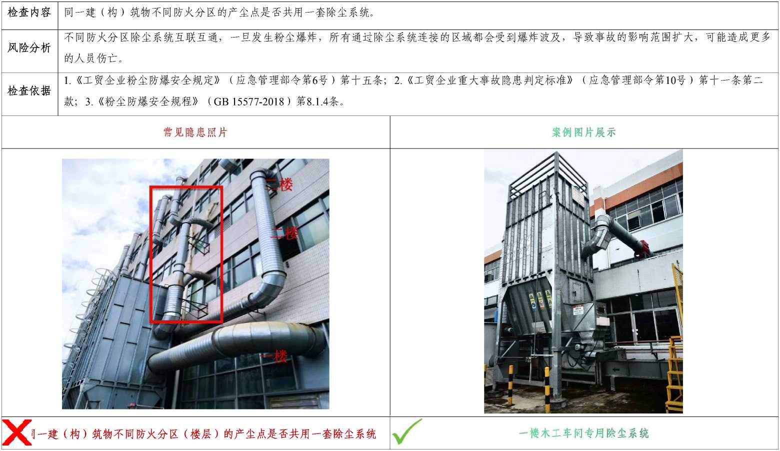 检查内容 两栋或者两栋以上独立的建(构)筑物内产尘点是否共用一套除尘系统。