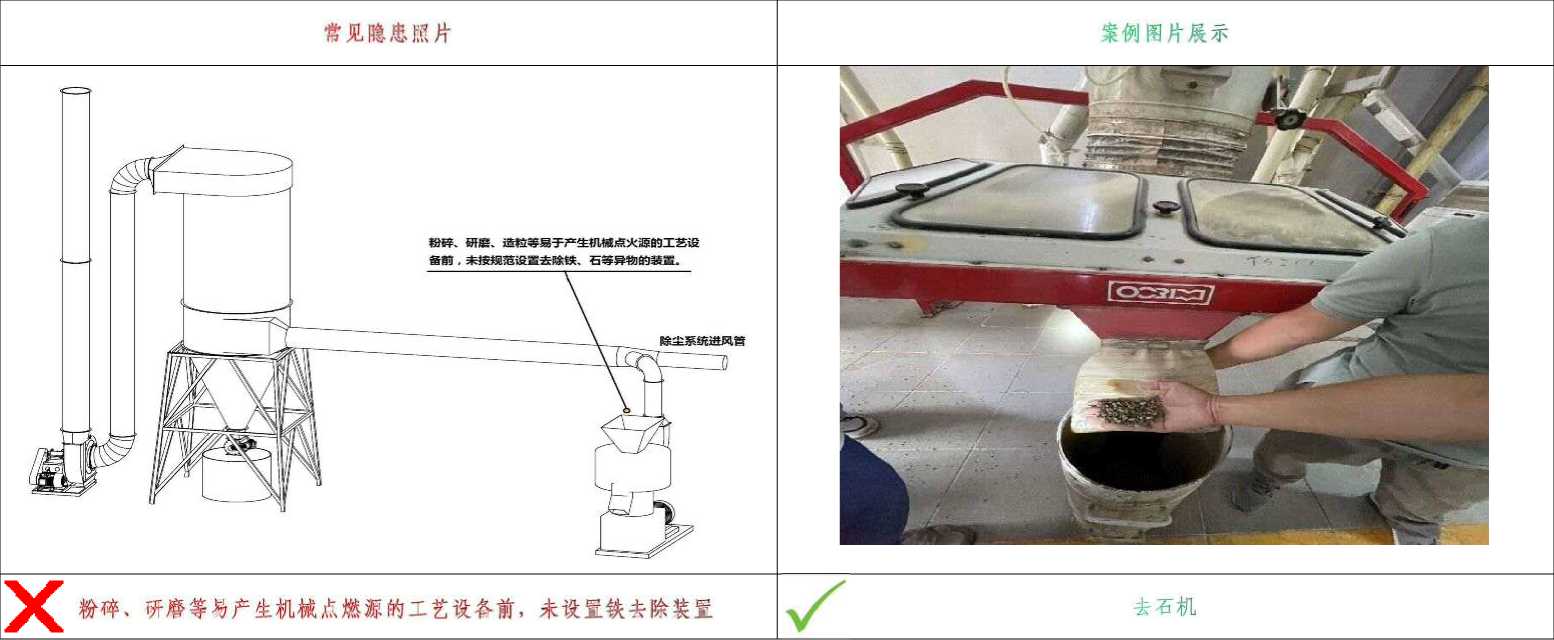 检查内容 粉尘爆炸危险场所是否设置在砖混、砖木、砖拱等非框架结构的多层建(构)筑物内。
