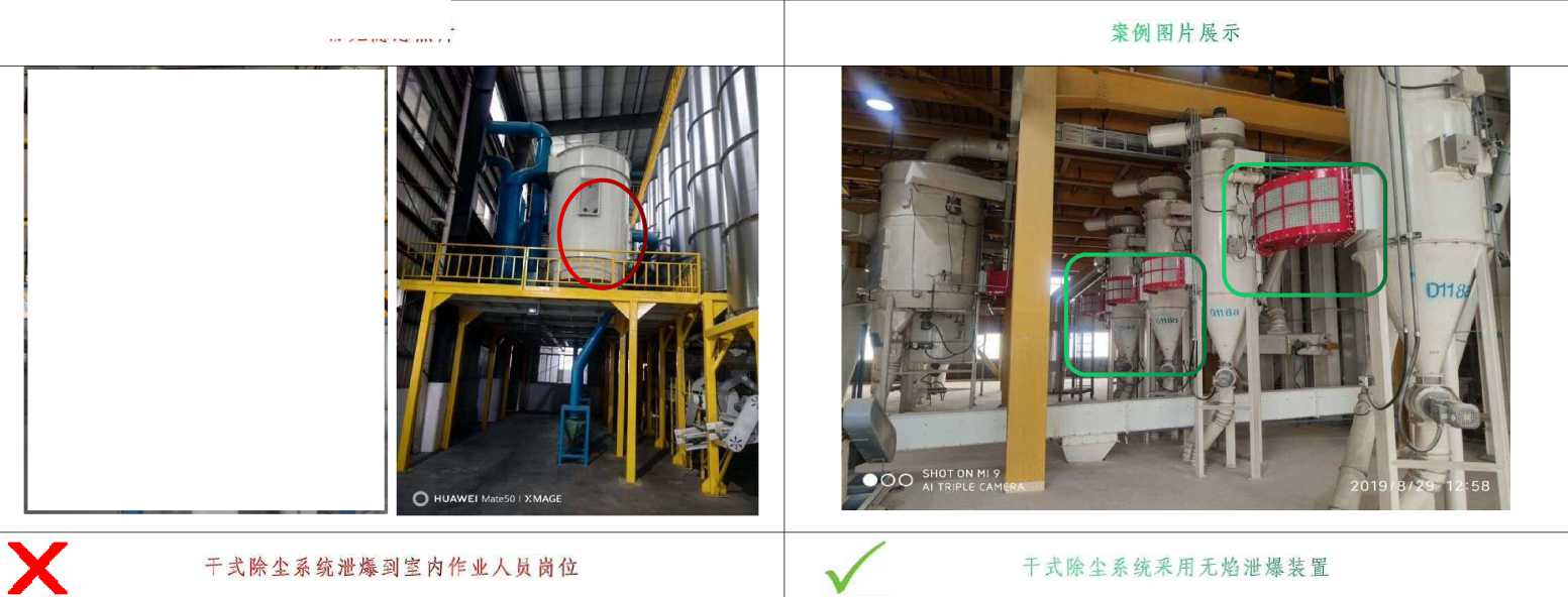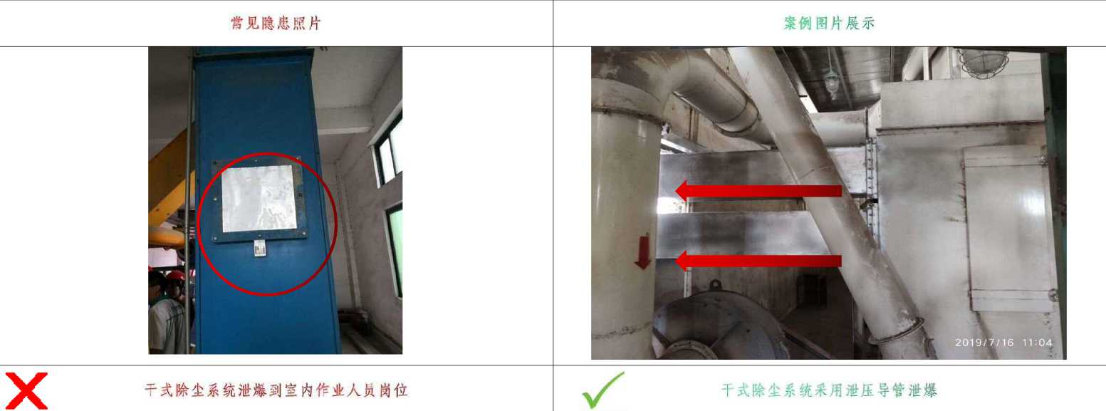 检查内容 干式除尘系统除尘器箱体是否采取泄爆、惰化、抑爆等任一种控爆措施。