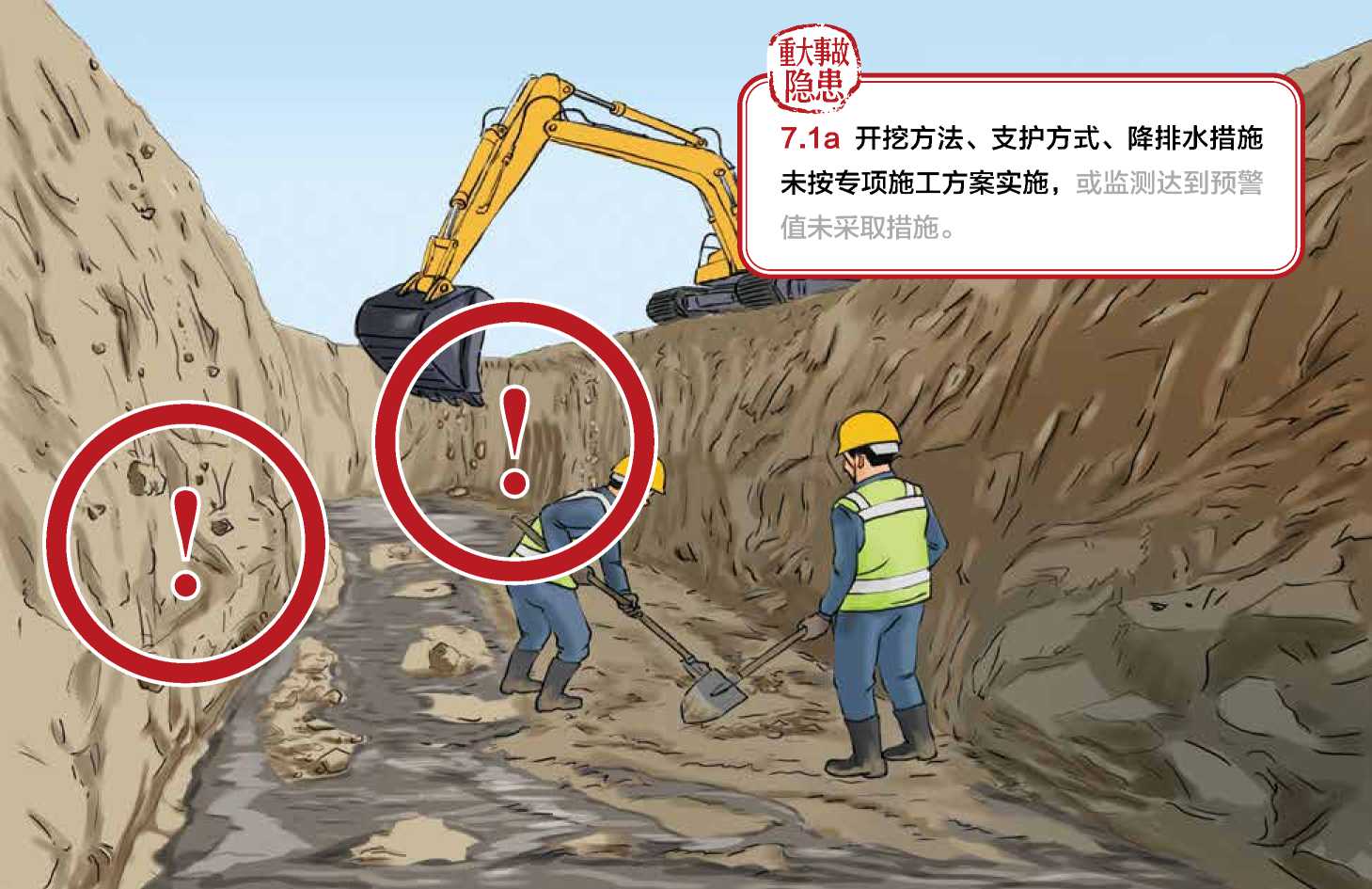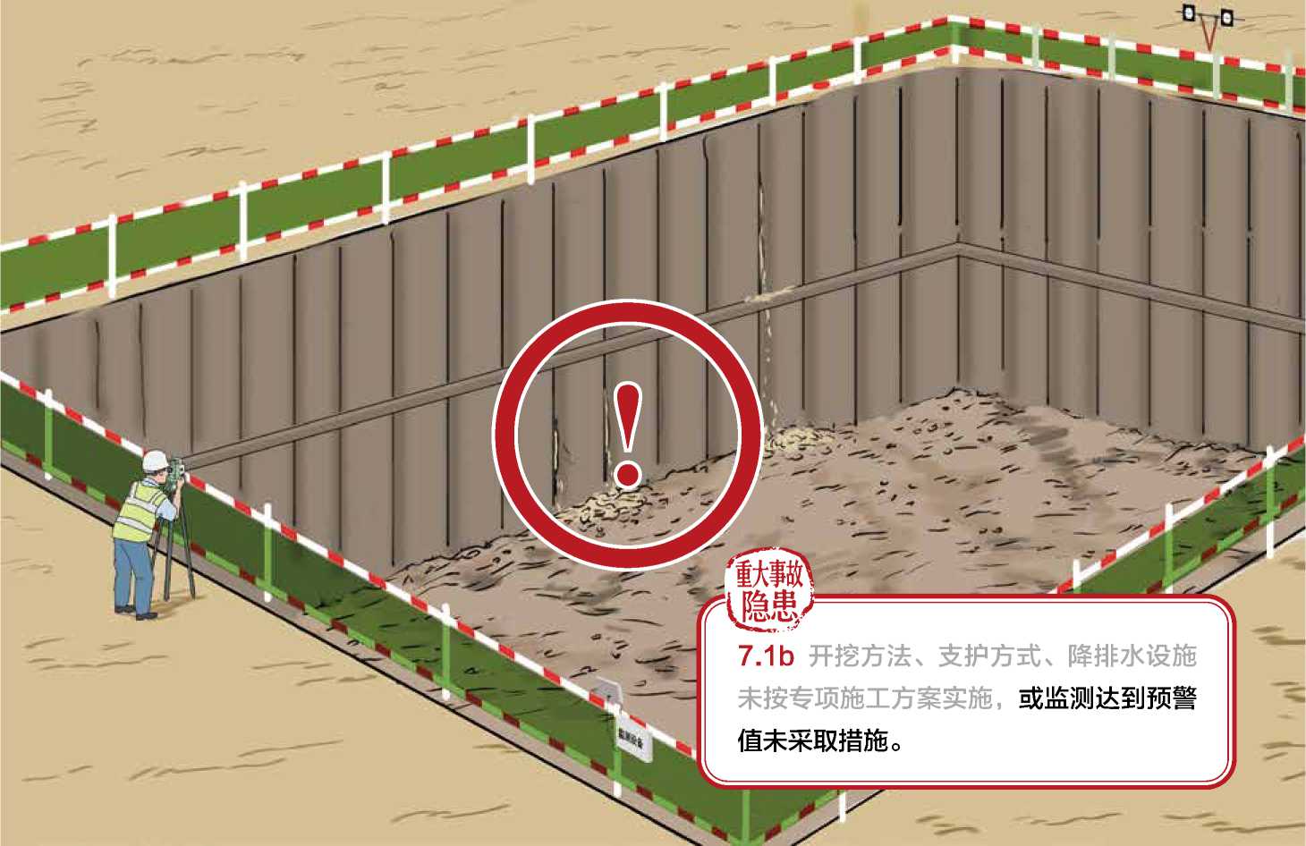 第七条 深基坑施工存在下列情形之一的,应判定为重大事 故隐患:
