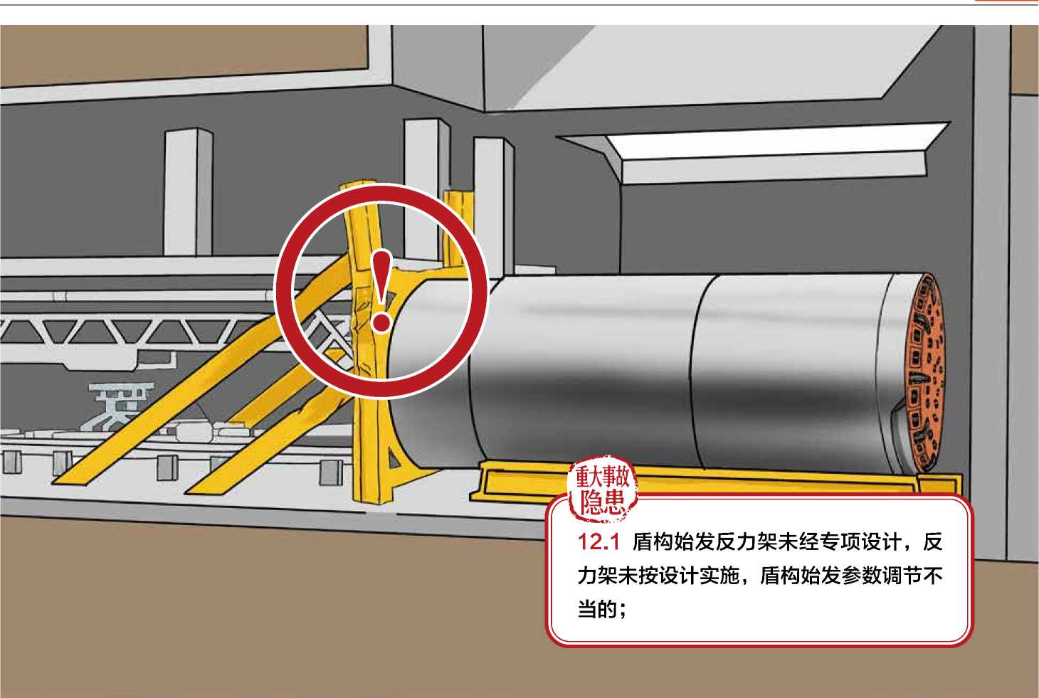 (一)盾构始发反力架未经专项设计,反力架未按设计实施, 盾构始发参数调节不当的;