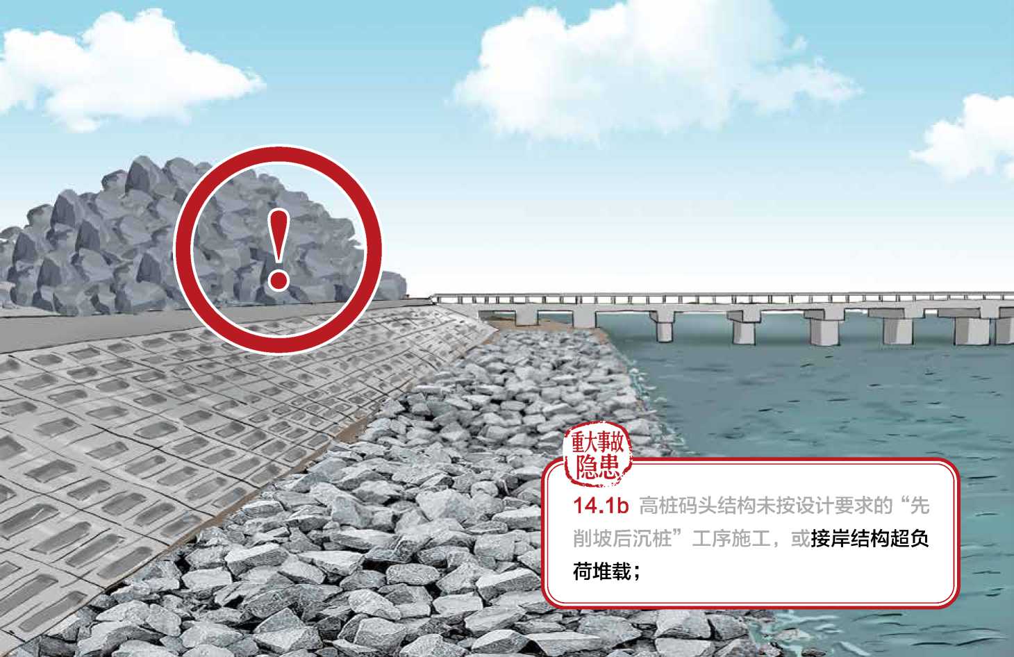 (一)高桩码头结构未按设计要求的“先削坡后沉桩”工序 施工,或接岸结构超负荷堆载;