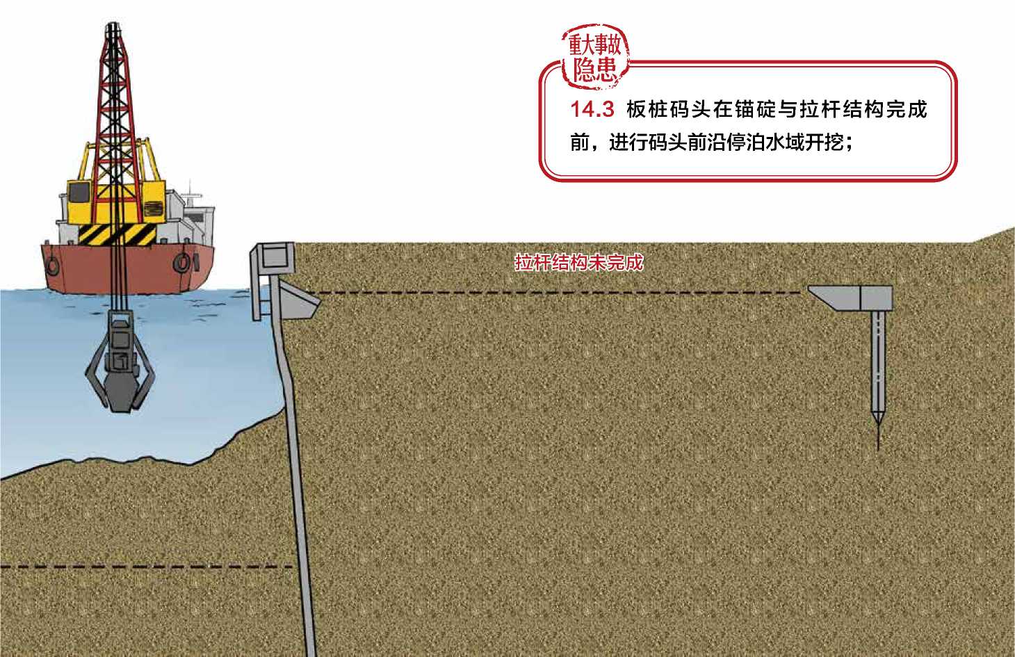 (三)板桩码头在锚锭与拉杆结构完成前,进行码头前沿停 泊水域开挖;