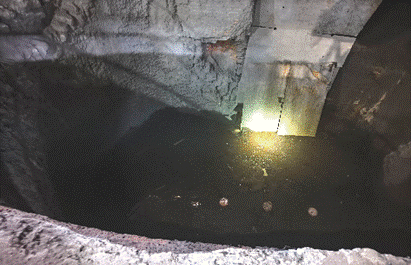 (1) 事故坑、炉下渣坑、炉前平台、炉基区域、厂房内吊运和地面运输通道等6类区域是否存在生产性积水(如图1); (2) 事故坑、炉下渣坑、炉前平台、炉基区域、厂房内吊运和地面运输通道等6类区域是否存在渗水、积水情况,是否设置排水设施(如图2); (3) *熔融金属吊运通道、冶炼炉、连铸等熔融金属区域厂房防雨水结构是否完好(如图3)。 |