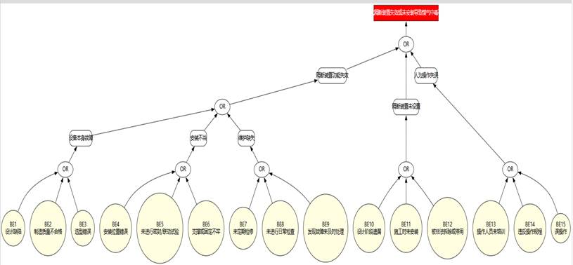 以“安全设施未正常运行导致伤亡事故”为顶事件进行故障树分析 |