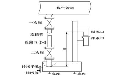 水封式排水器必须保持持续且足够的水封高度,最高封堵煤气压力不应低于30kPa(3060mmH2O),防止煤气击穿水封,并避免不同管道共用排水器或排水管连通。