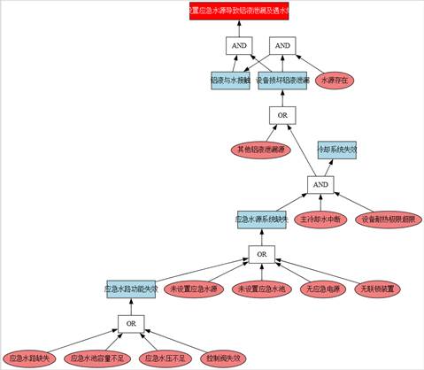 以“炼钢炉水冷元件漏水导致爆炸”为顶事件进行故障树分析 |