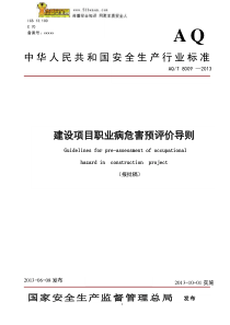 建设项目职业病危害预评价导则 AQ/T 8009-2013