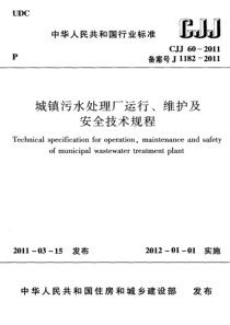 CJJ 60-2011 城镇污水处理厂运行、维护及安全技术规程