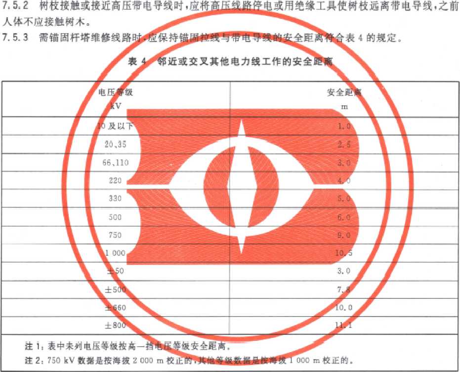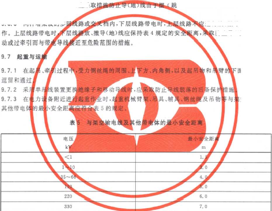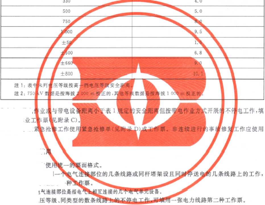 5.3.7帯电线路歼塔上与带电导线符合表1最小安全距离规定的工作以及谥行中的无电设备上的工 作,填用电力统路第二种工作票(见附录BL
