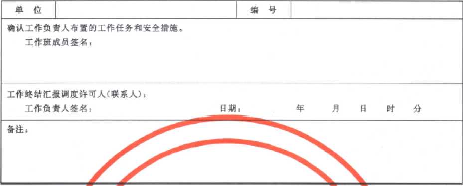 5, 1.2工作票是椎许在线雖及配珥设备上工作的书面安全要求之一,可包含编号、工作池点、工作内 容、计划工作耻间、工作许可时间、工作经結时间、停电叢围和安•全措施及工作票签发人、工作许可 人、工作负賣人和工作班成员等内容.