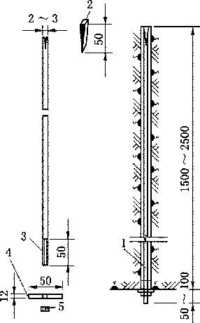 1 一杆体;2—楔子;3 一螺纹;4 一垫板;5一螺帽
