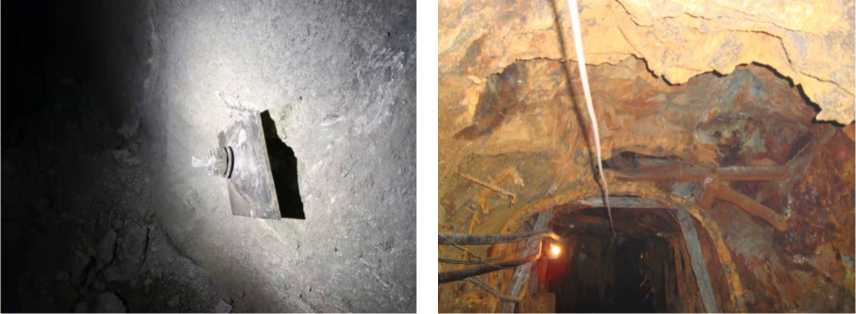 采用锚杆支护,托板未紧贴岩壁 |