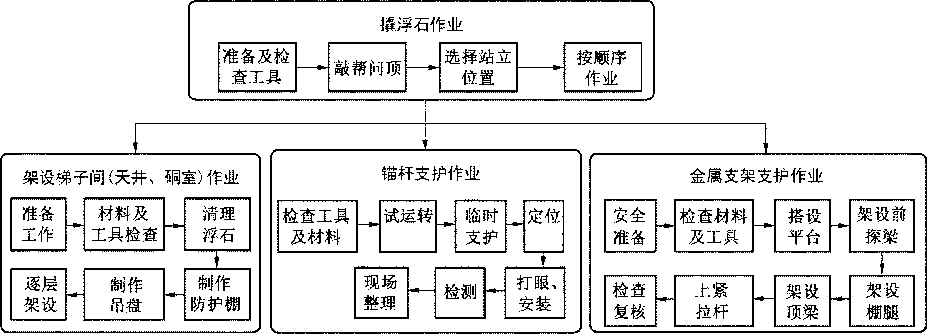 金属非金属矿山井下支护作业过程中,主要存在如下安全风险:冒顶片帮、中毒窒 息、高处坠落和机械伤害等。