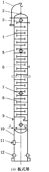 8一提馏段塔盘;9一气体入口; 10一裙座;