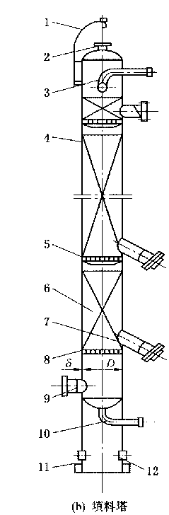 1一吊柱;2一气体出口; 3一回流液入口; 4一精