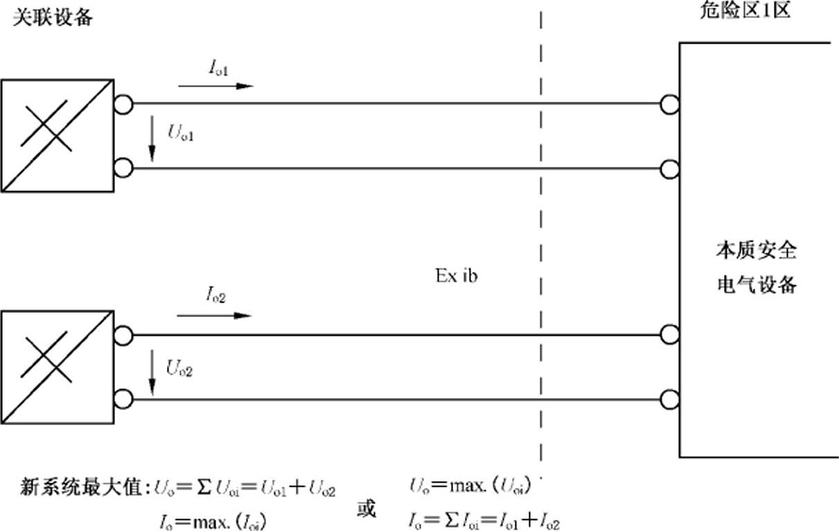 附录B (资料性附录)貝•有一个以上线性电流/电压特性关联设备的本质安全电路系统最大电流