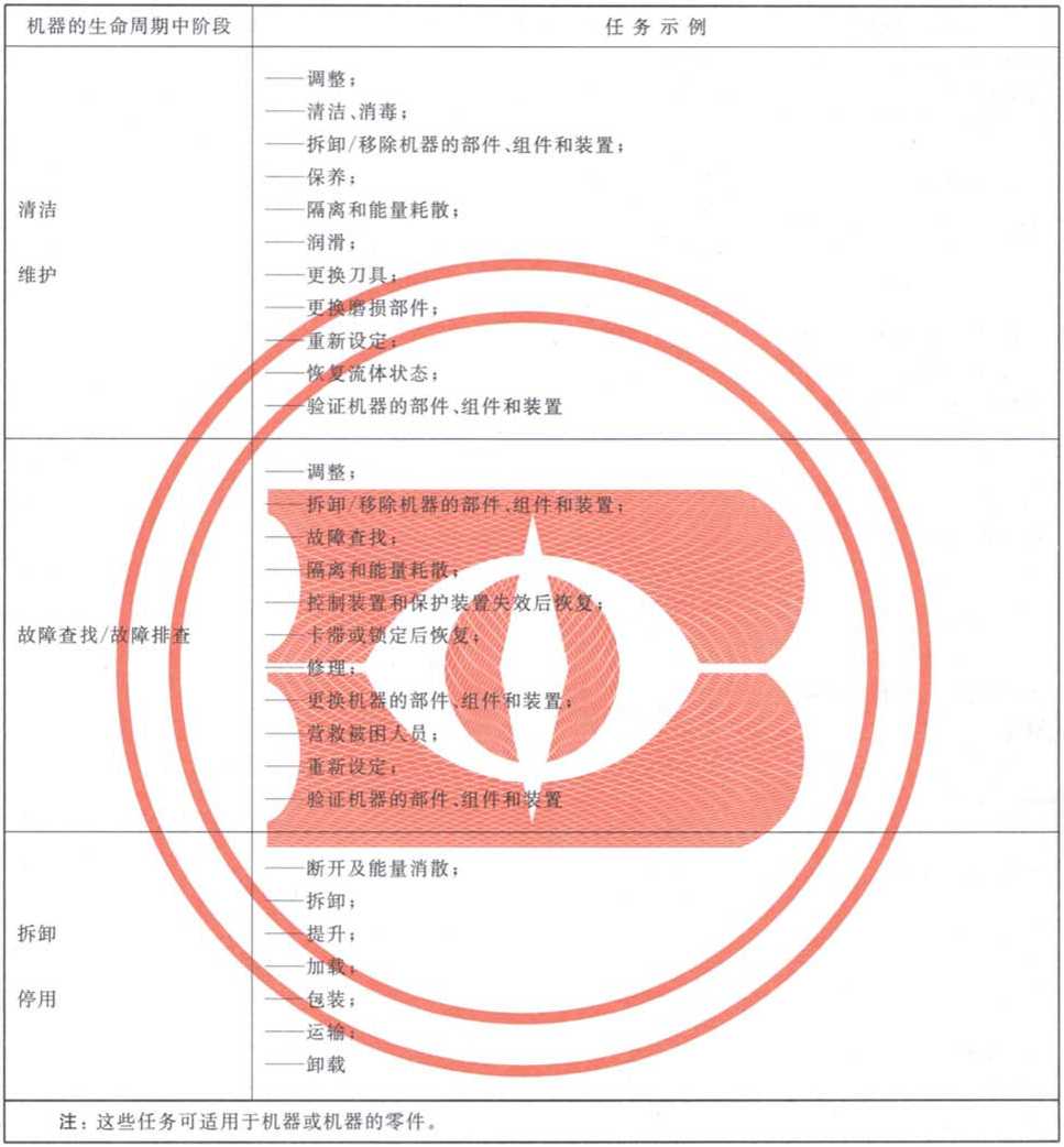 注1:附录B以单独的表格分别给岀了危险、危险状态和危险事件的示例.以阐明这些概念并在危险识别过程中对 设计者起到帮助作用.