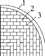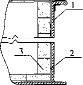 1——设备本体;2——衬铅板;3——搪钉 1——设备本体;2——衬铅层;3一块材衬里