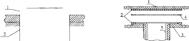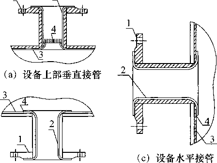 1——设备孔;2——孔衬铅板;3——衬铅板;4——焊缝 图18设备接管及人孔衬里及焊接