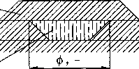 3 mm以下的铅板处于设备转角处的焊缝应采用搭接(图17),其搭接宽度一般为30 mm〜 40 mm。设备接管及人孔铅板衬里应釆用搭接(图18),搭接方向应与介质流向一致。