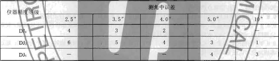 10. 2. 4施工控制网水平角观测的测回数,见GB 50026—2007《工程测量规范》条文说明10. 3. 3条。
