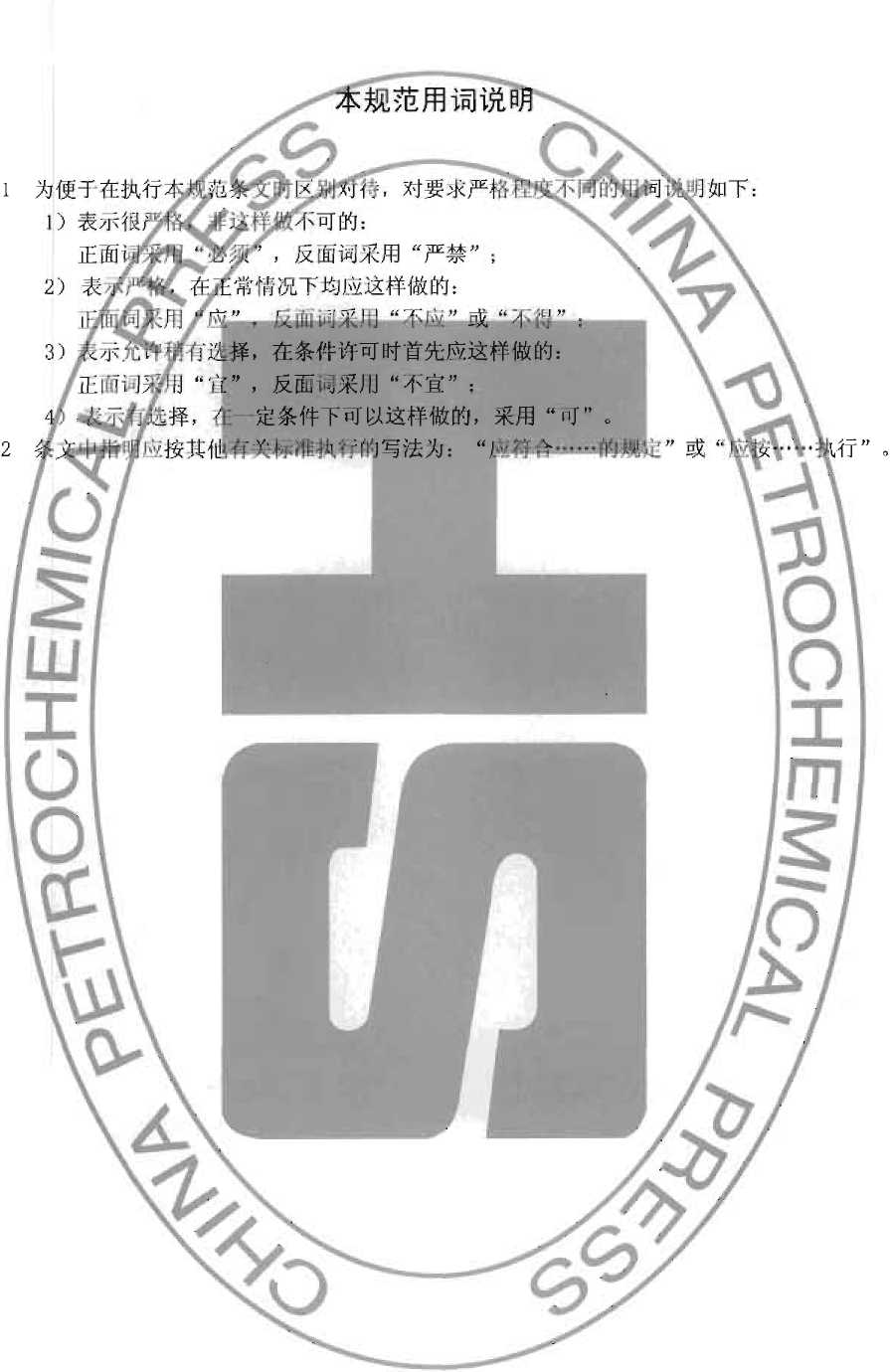 中国石化集团公司工程标准发行总站发行 地址;北;京市东城区安定门外大街58号 部编:IOoOH 电话:(OIo) 84271850 石化标准编辆部电话:(OlO) 84289937 读者服务部电话:(OIO) 84289974 http: //www.sinopec-press.com E-ITIail: PreSS@SinOPeC.com 版权专有不得翻印
