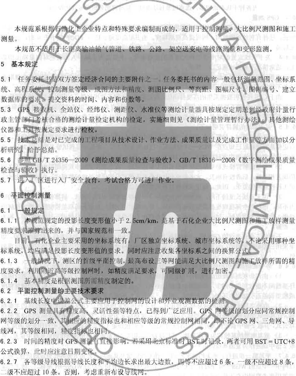 本规范适用F朽油无工企业施丄建设各阶段的控制测贫、地形测Iit t⅛T.测壻及成果验收。不适 用于线路测H和变形监测=