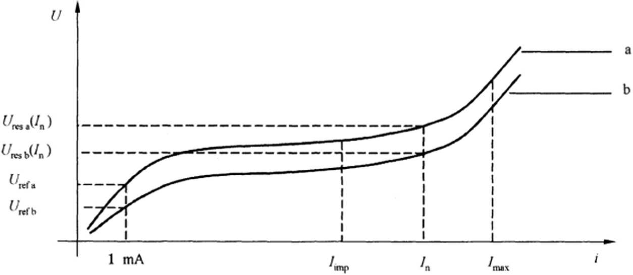 附录B (资料性附录)在某些系统中UC和标称电压之间的关系示例及Zno压敏电阻UP和