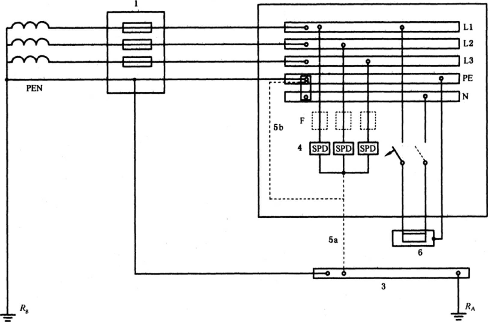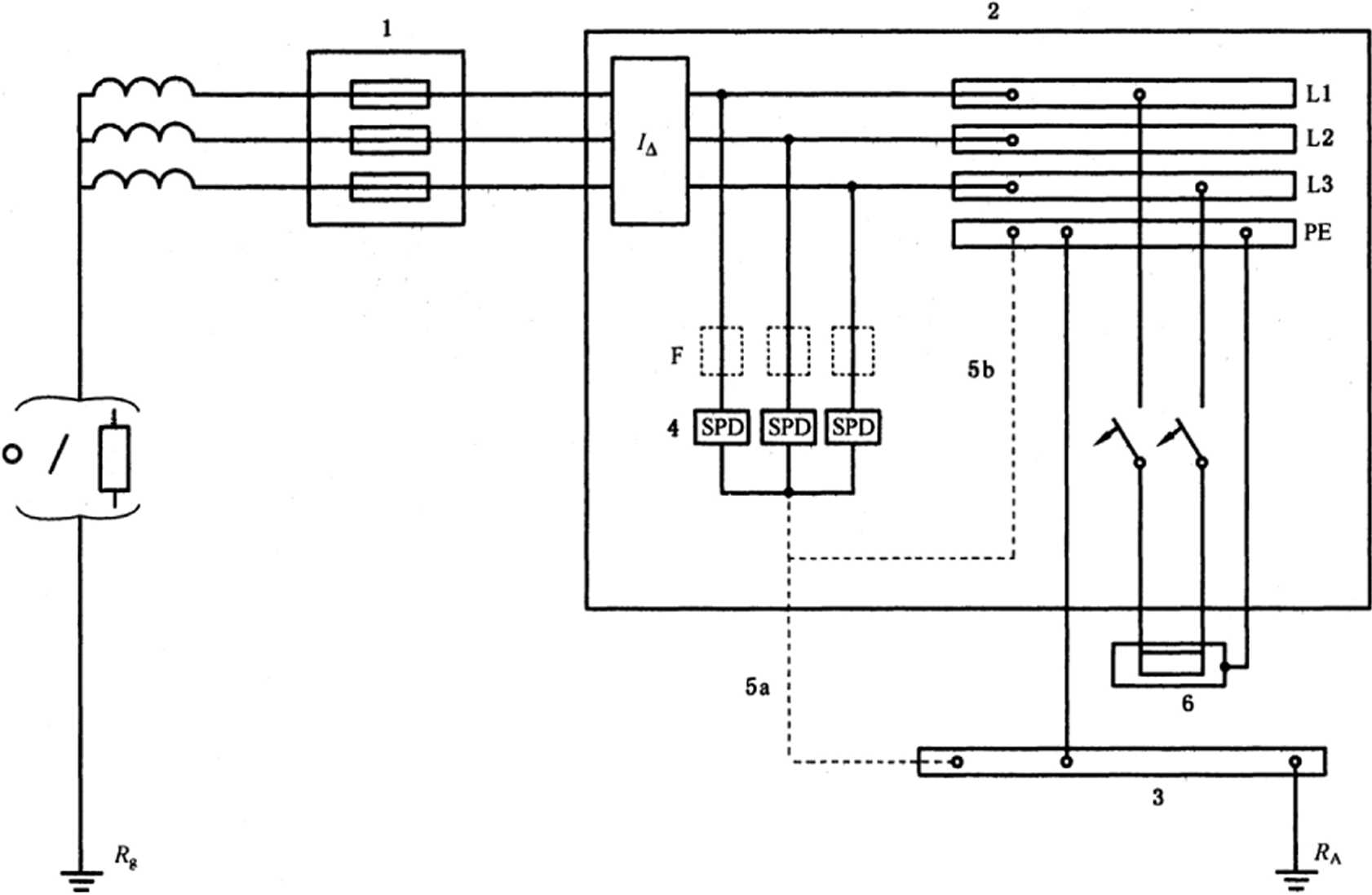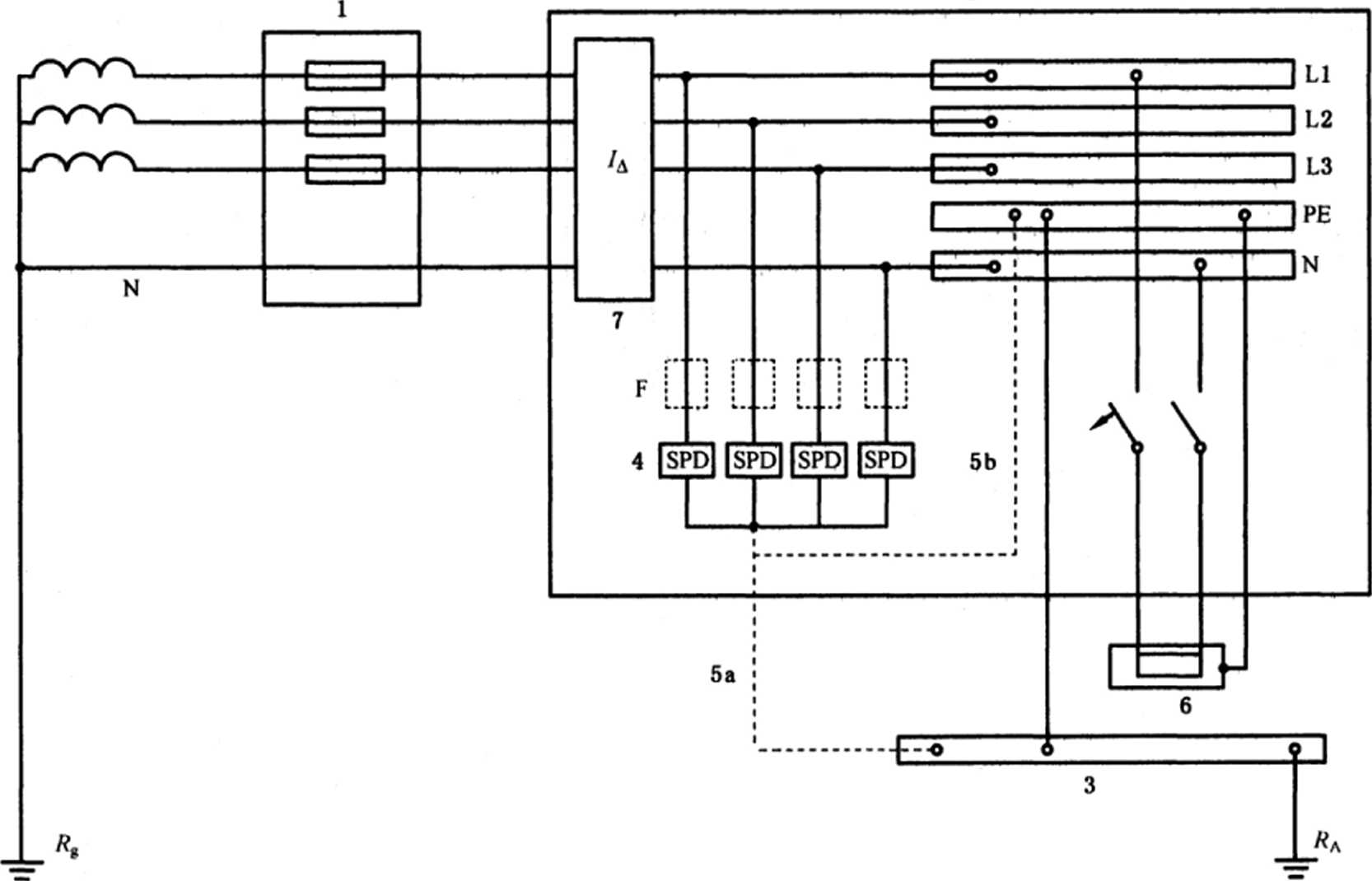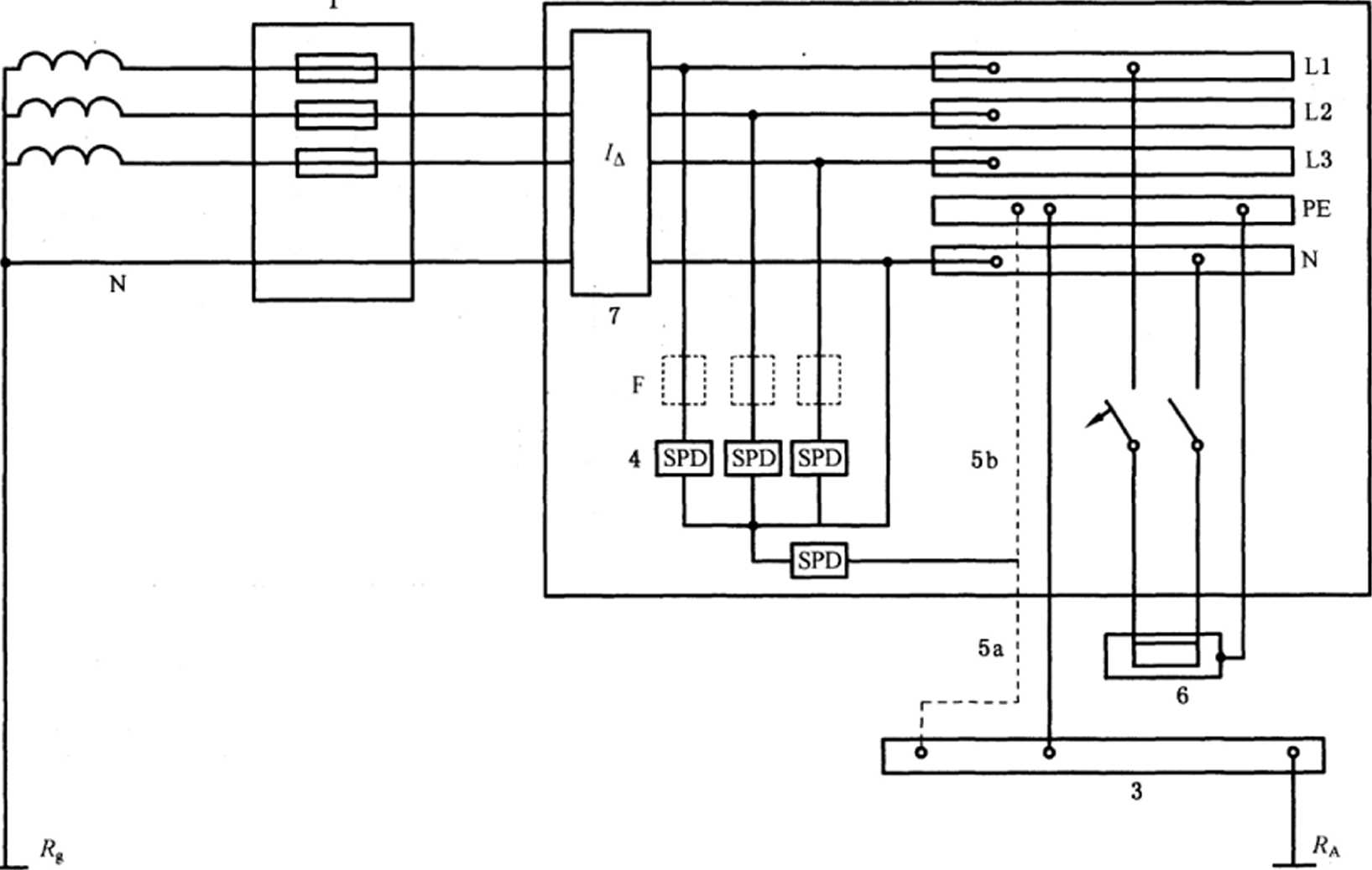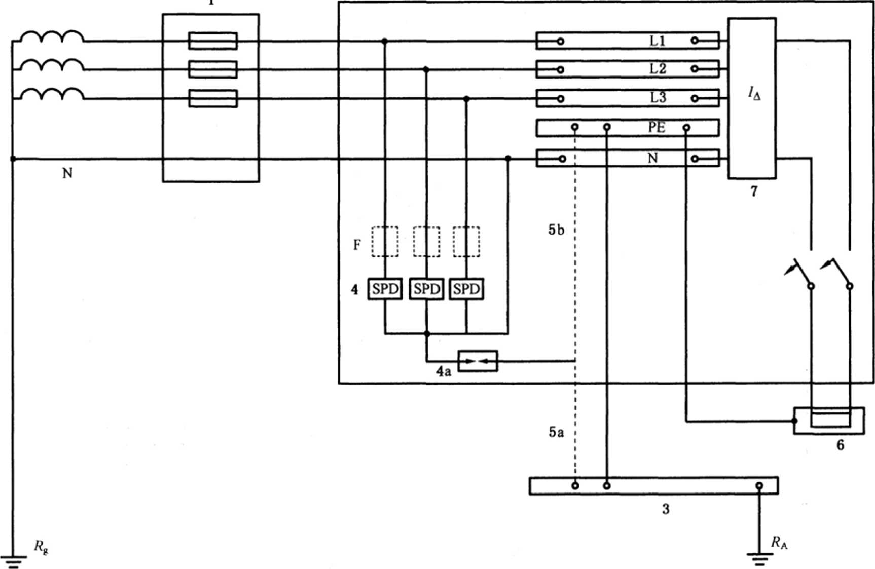 图K.3 SPD在TT系统中的安装(SPD装在RCD的前方)