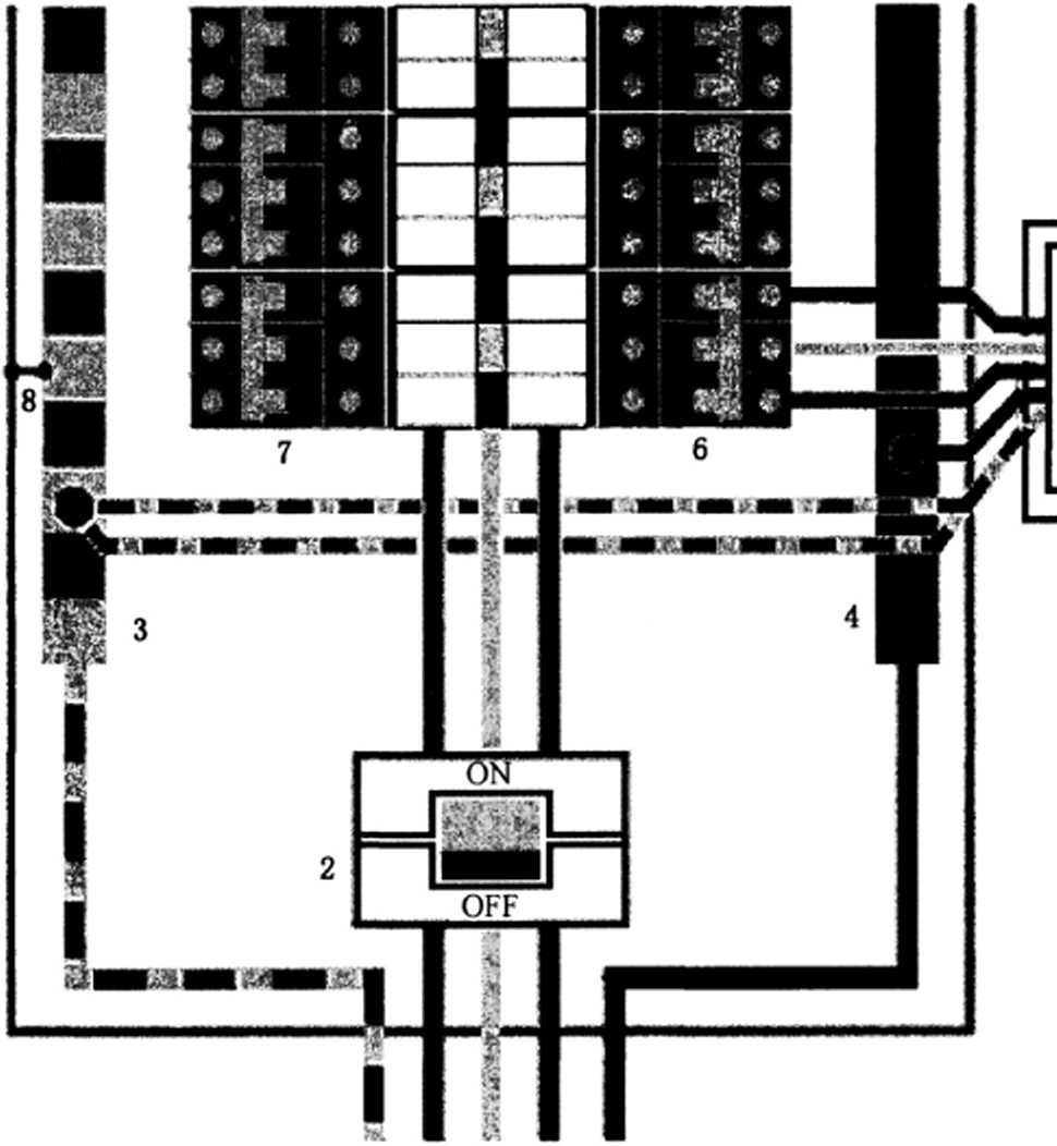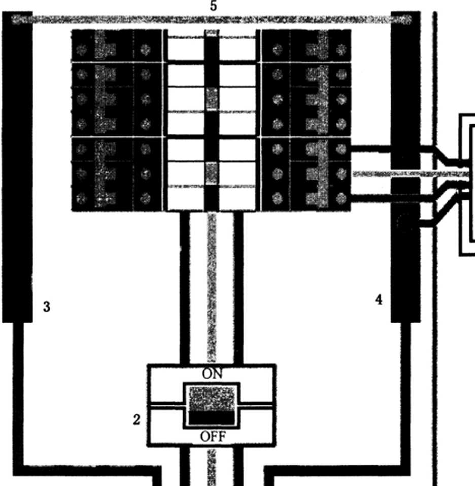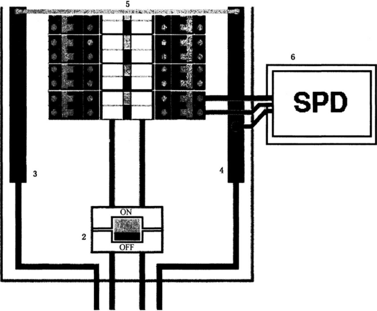 图N.5 SPD与输入电源上最近的可用断路器相连接(美国单相(分离的)3W + G, 120/240 V