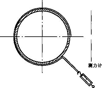 J.2. 1先将防腐层沿环向划开宽度约为20 mm、长IOCm左右的长条,划开时应划透防腐层,并撬起一 端。用测力计以10 mm/min的速率垂直钢管表面匀速拉起防腐层,记录测力计稳定数值。如图J. 1 所示。