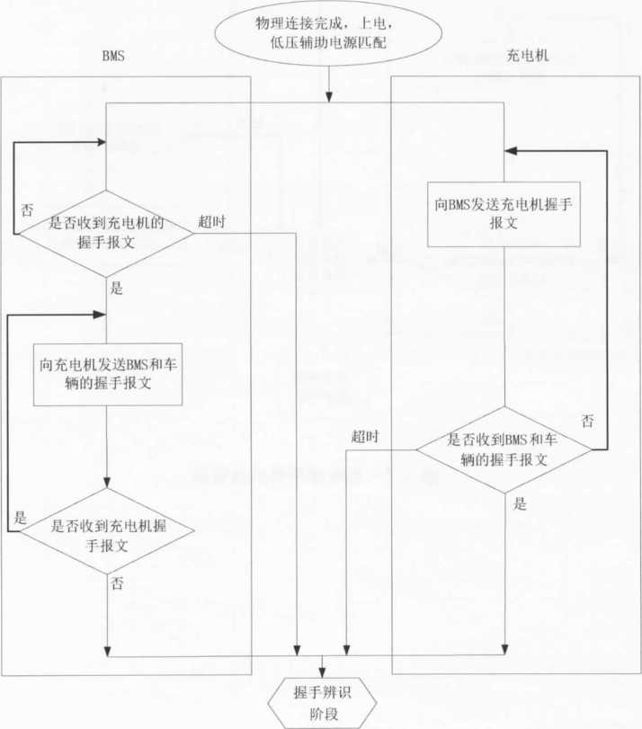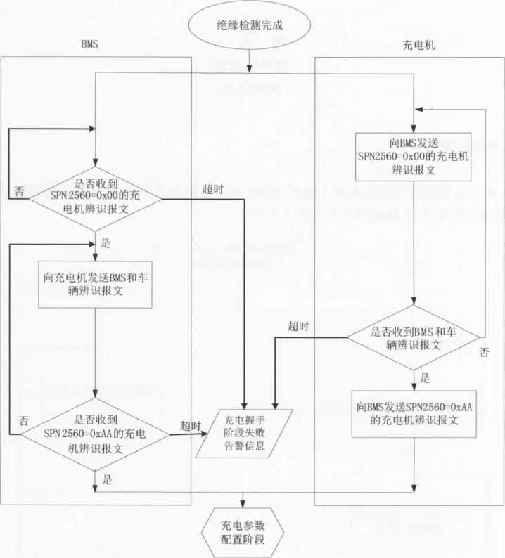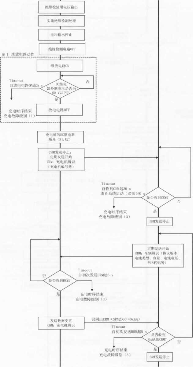 D BMS收到充电机发送的充电机辨识报文 (CRM) 2)或检测不到辅助电源输出 |