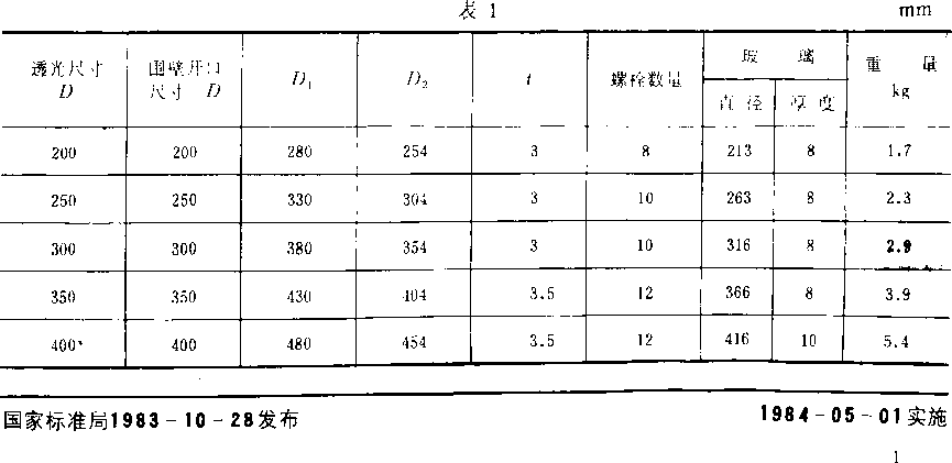 JIS F 2404—75的尺寸系列为φ 150, φ 200, © 250、φ 300;螺栓中心距边15mm,螺栓直径为M10。