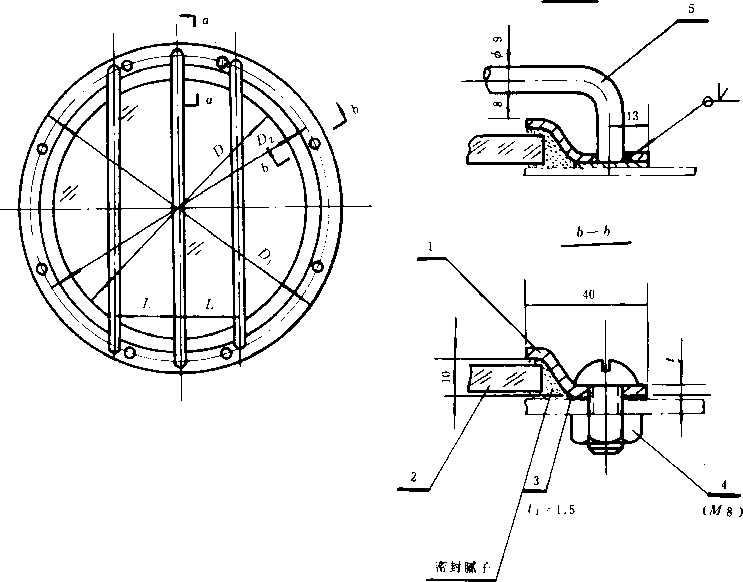 3 B型钢质带护栅固定圆窗的基本尺寸按图2及表2
