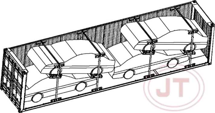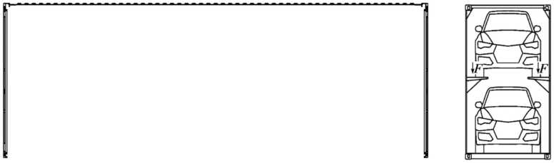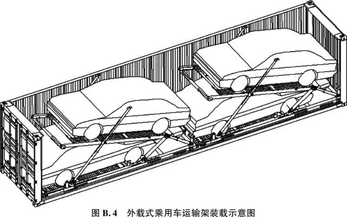 内载式乘用车运输架需先将运输架固定在集装箱内,然后在集装箱内完成乘用车装载,示意图如 图B 1、图B. 2所示。
