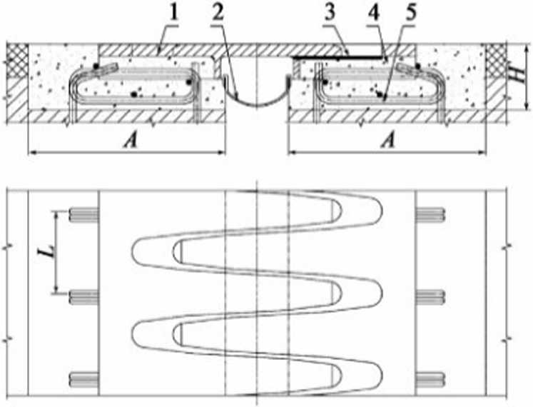 梳齿板齿缝成对交错布置,环形锚筋、锚板焊⅛w 肋梳齿板上的锚固式伸缩装置 3.2