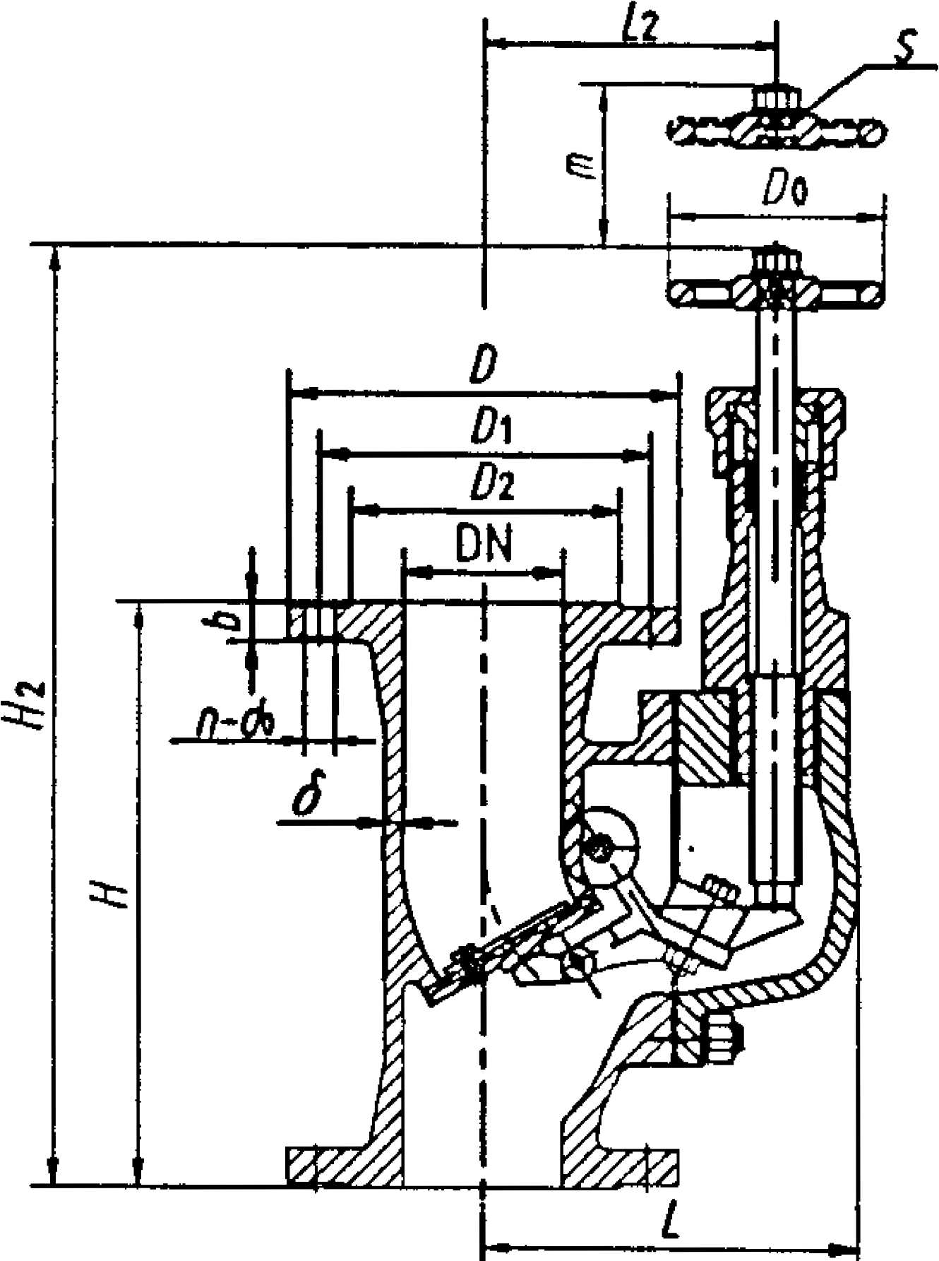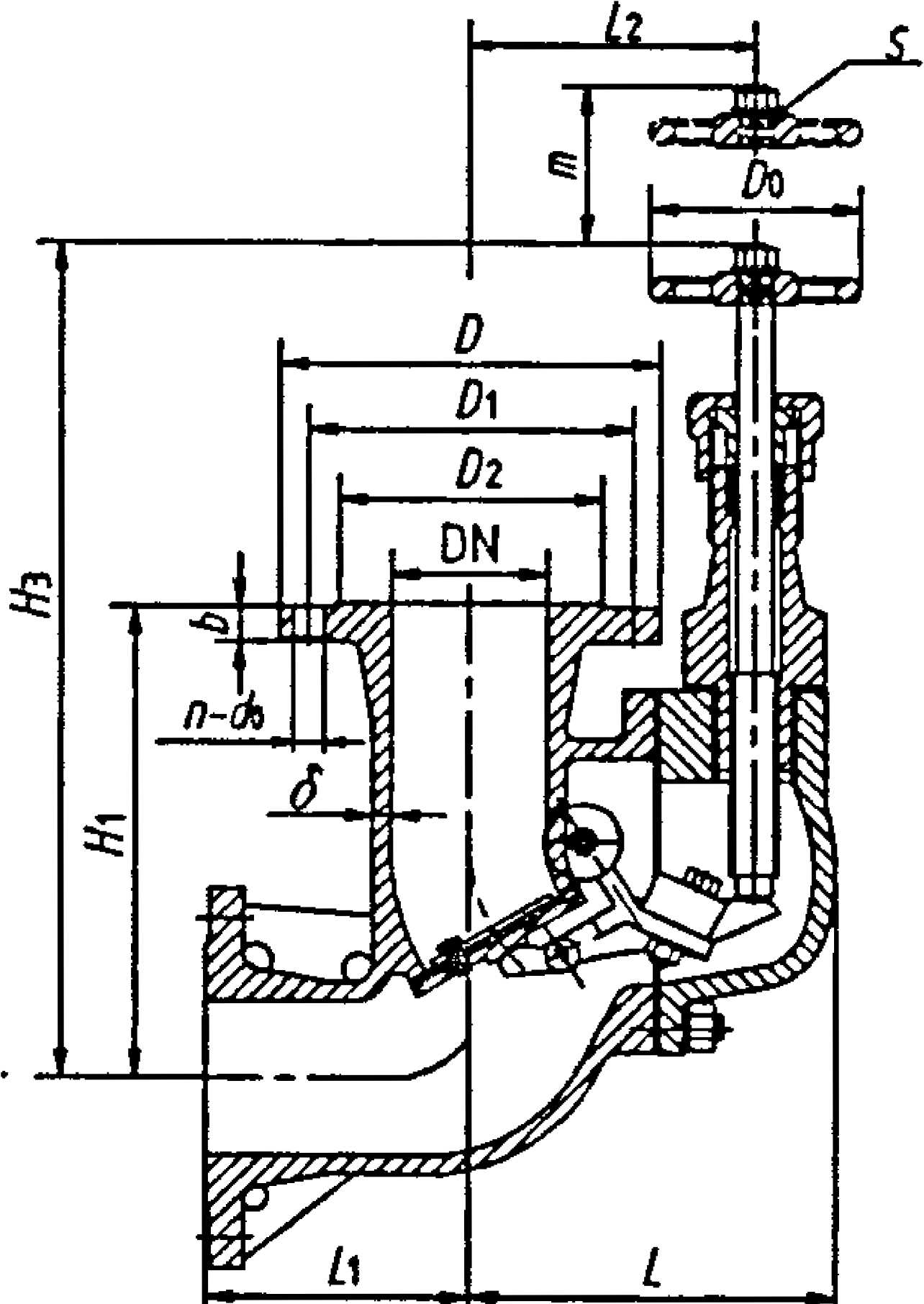B型一法兰连接尺寸按GB/T 569的直角型防浪阀;