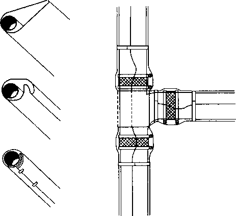 “非裸露式电熔管箍”是一种电熔管件结构。非裸露的螺旋 式电热丝保证了焊接区均匀的热传导,并有效杜绝了管材插入时 发生短路的现象,同时乂避免了裸露式电热丝易出现老化腐蚀的 缺陷,且管件内壁光滑平整,便亍安装。