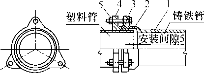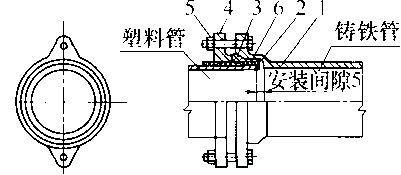外径不等塑料管与铸铁管不锈钢 卡箍连接(一)