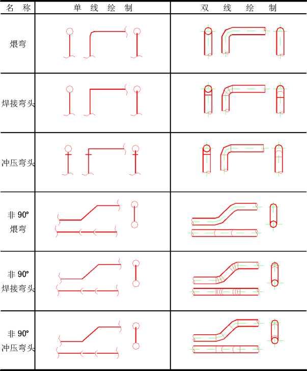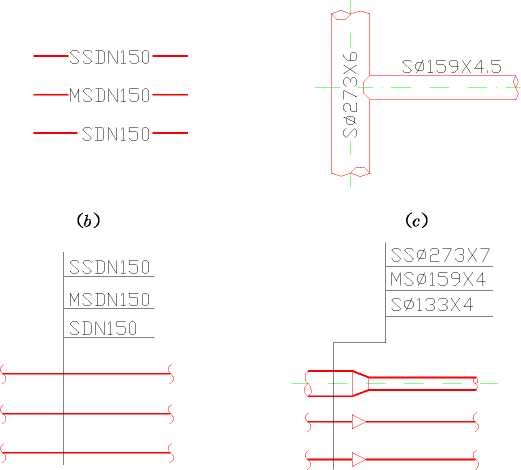6. 4.5管道轮廓线应采用粗线绘制;支座简化外形轮廓线应采用 中线绘制;支架和支墩的简化外形轮廓应采用细线绘制;保温结构 外轮廓线及其他图线应采用细线绘制。