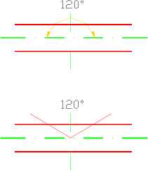 6. 3.4在管线平面展开图上应绘出管线、管路附件及管线设施或 其他构筑物的示意图。在各转角点应表示出展开前管线的转角方 向。非90。角尚应标注小于180。的角度值(图6. 3. 4)。