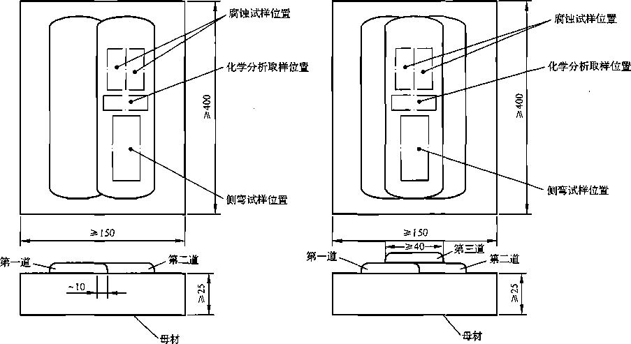 图1采用了 JIS Z 3322中5丄3图1,限于试件尺寸,弯曲试样与堆焊方向相同。