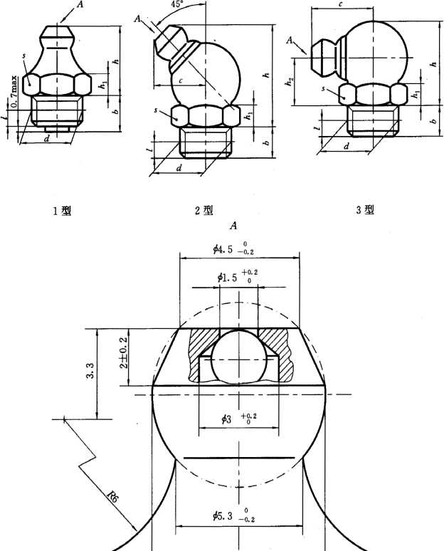 锥形润滑油嘴分为1型、2型、3型,见图1;尺寸见表L